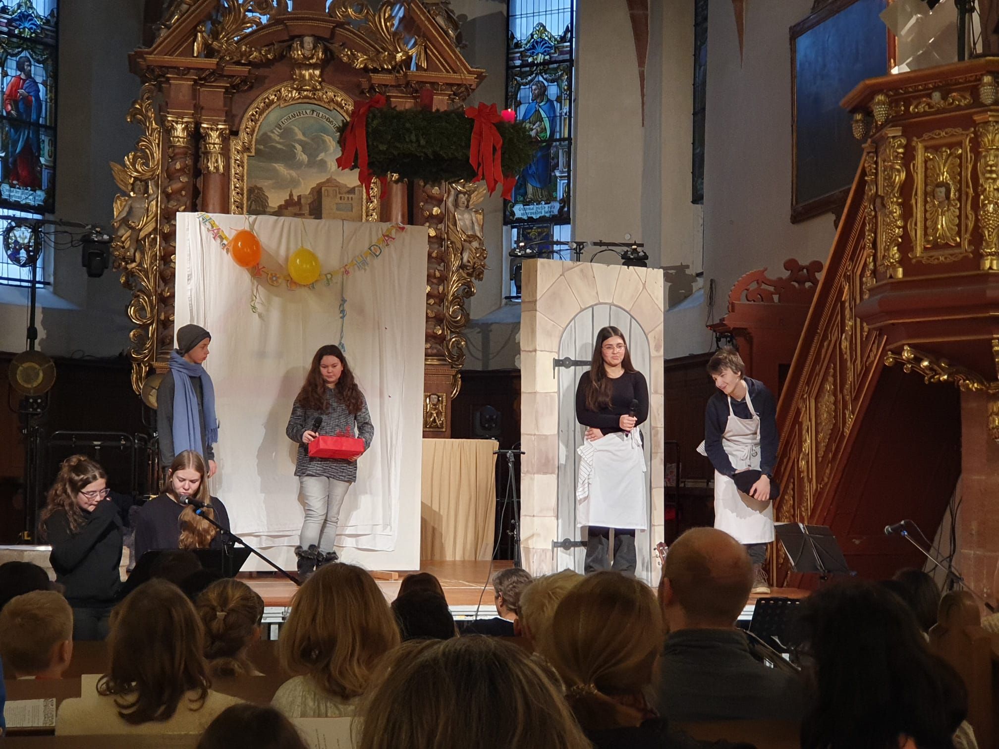 Zufriedenheit und die Gewissheit, dass alles gut wird, verspricht ein rot glänzendes Paket. Dieses geheimnisvolle Geschenk ist Mittelpunkt des Weihnachtsgottesdienstes der Richard-Glimpel-Schule, den in diesem Jahr erneut Simone Zitzmann und Tilla Hanstein mit 65 Kindern und Jugendlichen vorbereitet und einstudiert hatten