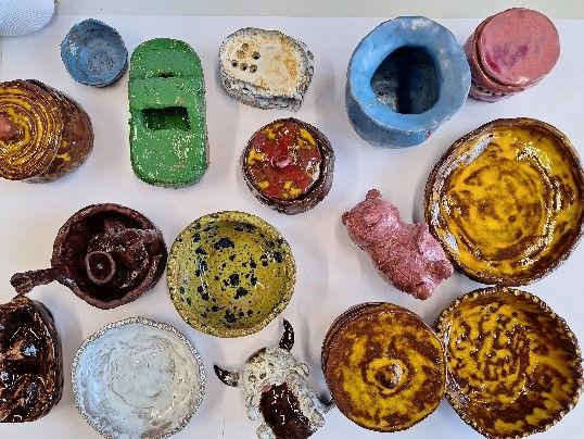 Jetzt musste unsere Keramik zum zweiten Mal gebrannt werden, diesmal bei 1100° C Glattbrand. Nach dem Brennen wurde der Ofen ausgeräumt und die Werkstücke abgeholt. Zum Schluss begutachteten wir diese.