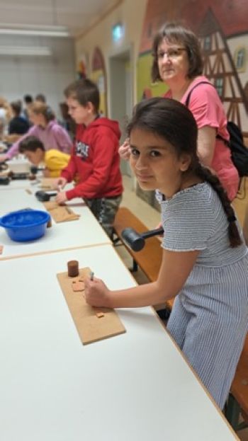 Da wurden Burgen gebaut, mittelalterliche Spiele gestaltet und im Sport Schwertkämpfe ausgefochten. Bei Minnesang und dem Gestalten von Instrumenten kam man der Musik dieser Zeit näher. Um Kleidung herzustellen, musste man spinnen, filzen und weben. Im Hauswirtschaftsunterricht wurden Hirsebrei gekocht und selbstgebackenes Brot in eigens getöpferten Gefäßen gekostet. Um mittelalterliche Zeugnisse in unserer Region zu erkunden, besuchten die Klassen die Nürnberger Burg, das Albrecht-Dürer-Haus in Nürnberg, die Feste Rothenberg oder nahmen an einer Stadtführung durch Lauf teil.