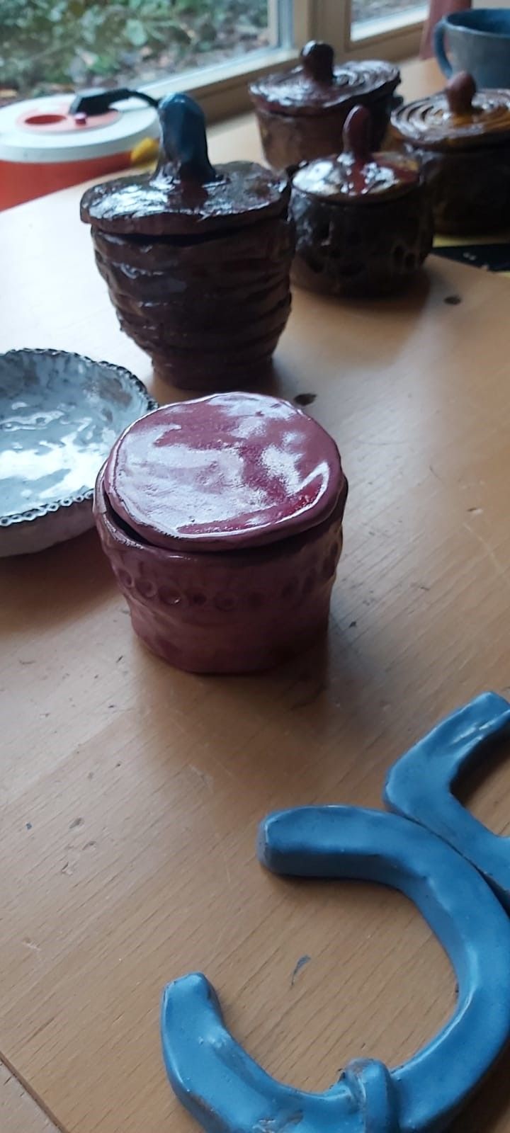 Jetzt musste unsere Keramik zum zweiten Mal gebrannt werden, diesmal bei 1100° C Glattbrand. Nach dem Brennen wurde der Ofen ausgeräumt und die Werkstücke abgeholt. Zum Schluss begutachteten wir diese.