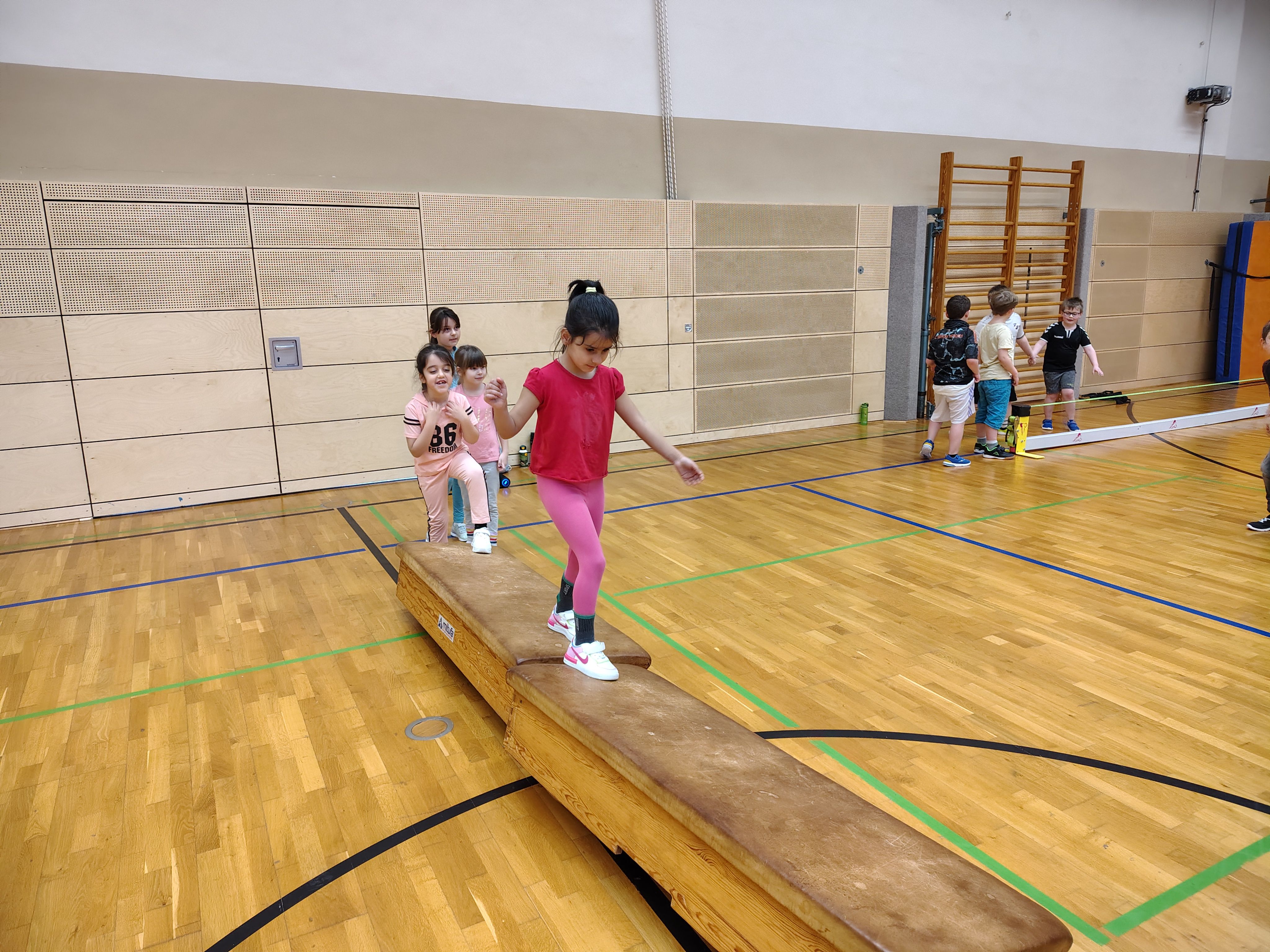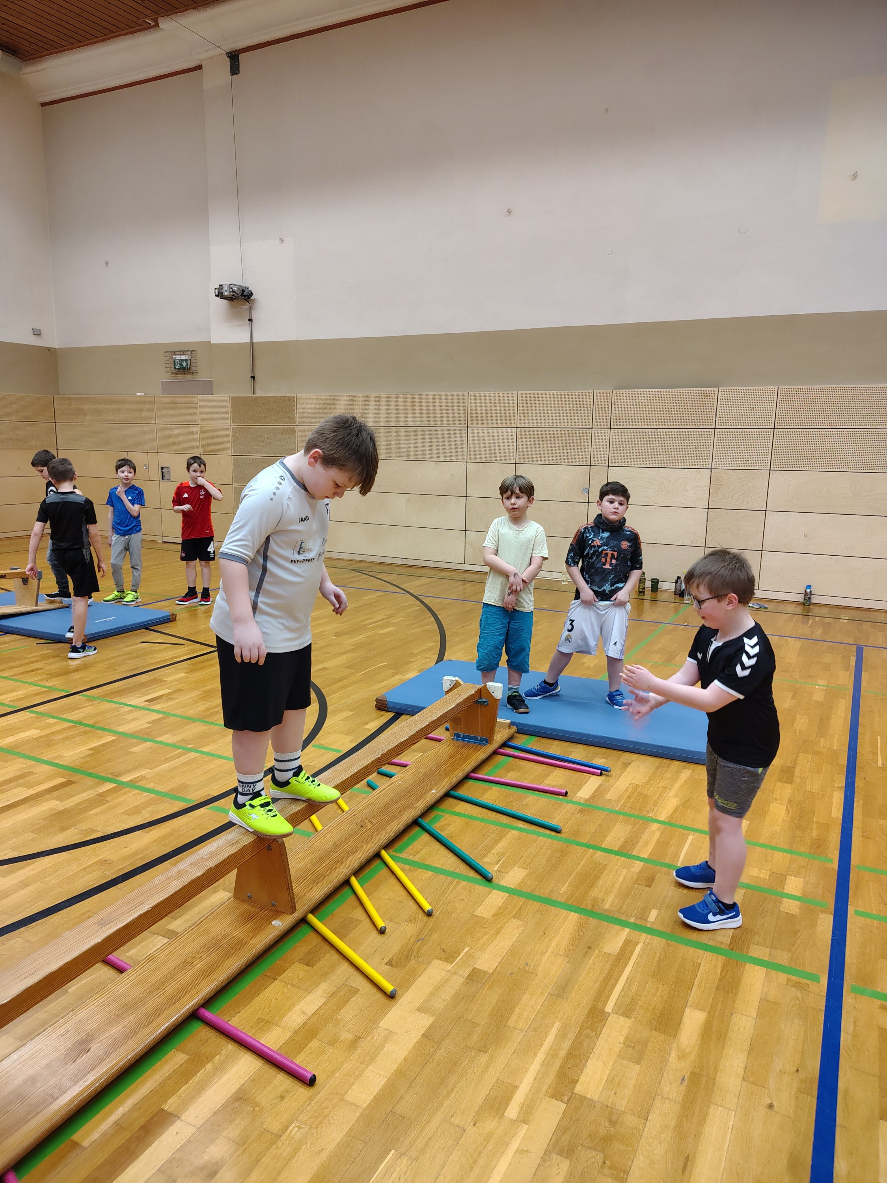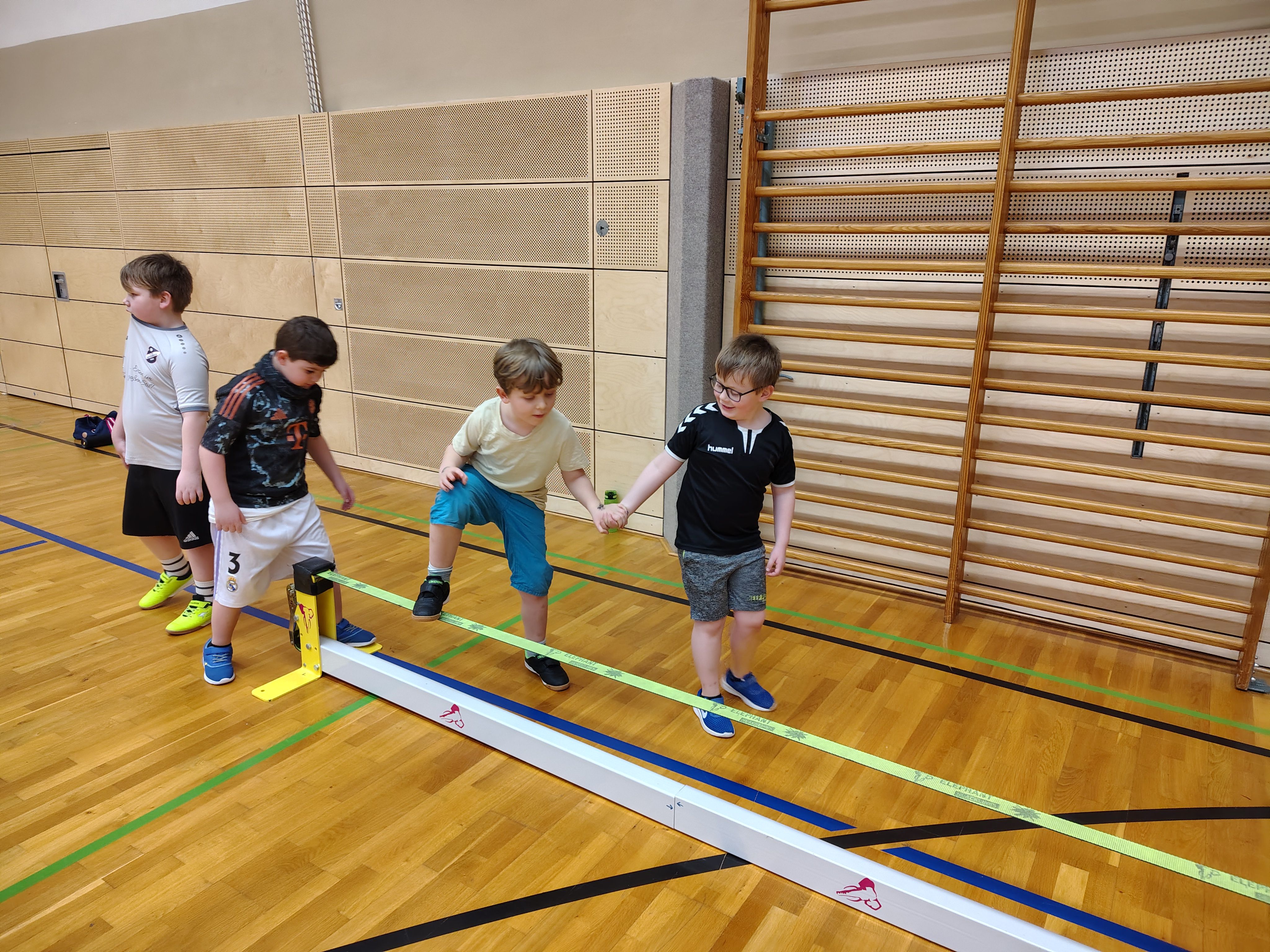 An mehreren Stationen wurden Übungen für das Gleichgewicht angeboten. So ging es über mehrere Wackelbrücken, eine Slackline oder man musste mit Hilfe der Ringe über einen großen Graben kommen.