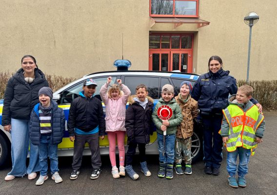 Am Montag, den 24.3.2025, bekamen die Kinder der SVE in Lauf Besuch von der Laufer Polizistin Rebecca Wittmann. Nachdem die Ausrüstung und Uniform der Polizistin begutachtet und erklärt wurde, ging es ans Üben. Viele Kinder kommen heuer in die Schule und dürfen ihren Schulweg dann alleine bestreiten. Dafür ist es wichtig, dass sich die Kinder im Straßenverkehr sicher bewegen und eine Straße selbstständig überqueren können. Die „Trockenübungen“ wurden mithilfe eines ausrollbaren Zebrastreifens und 2 Rollbrettern im Rhythmikraum durchgeführt, bevor es auf die Straße mit richtigem Verkehr ging. Das Highlight folgte, als wir das Polizeiauto so richtig unter die Lupe nehmen, die Kinder sich sogar als Diebe – in Handschellen – und Polizisten – mit Warnwesten – in das Einsatzfahrzeug setzen und Blaulicht und Sirene betätigen durften.