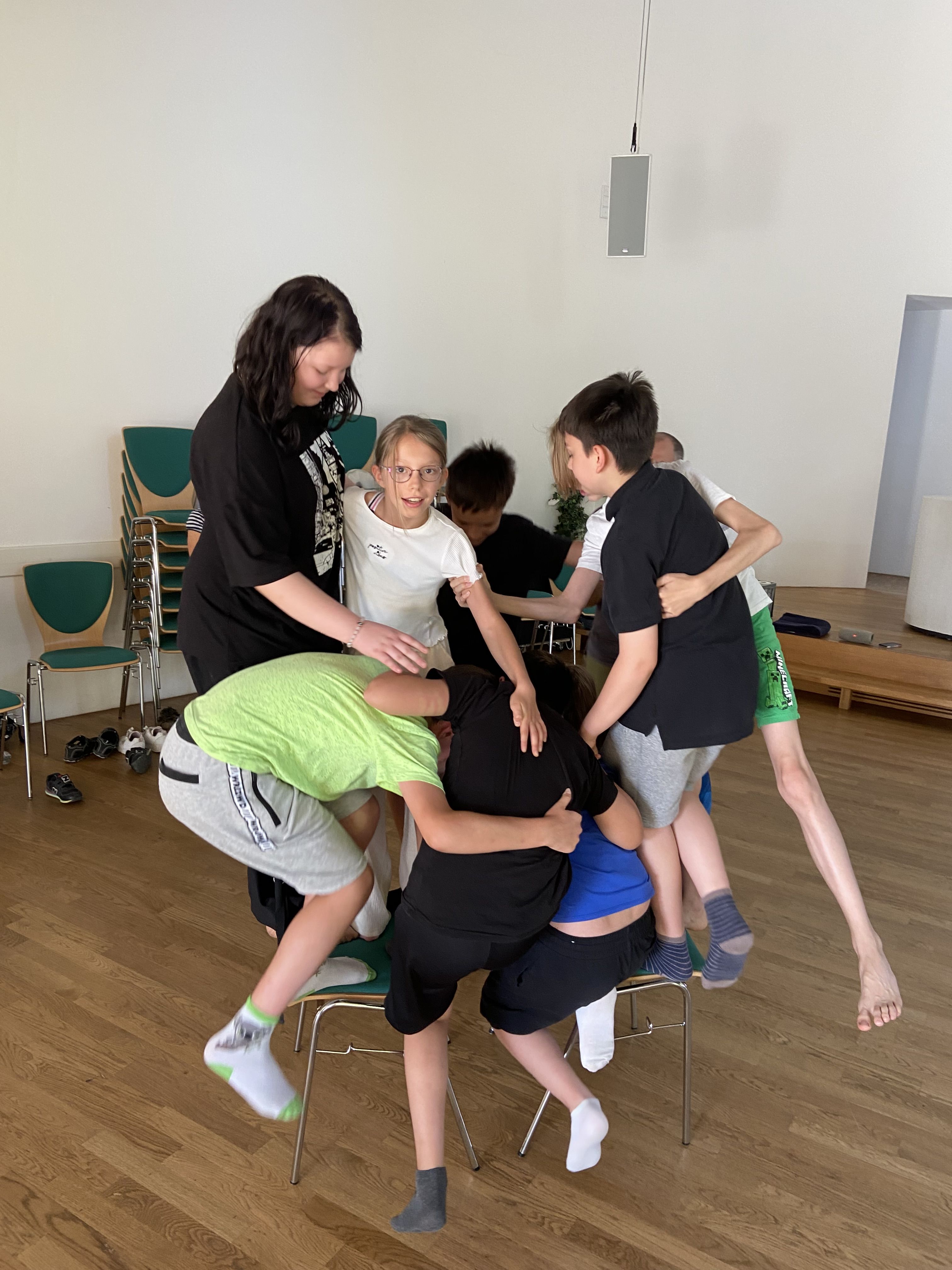 Die 5. Klasse durfte an sieben Montagen gemeinsam mit Sebastian Dick in spielerischer Form erfahren, dass gutes Zusammenleben nur dann klappt, wenn wir auch zusammenhalten, fair spielen, aufeinander hören und respektvoll miteinander umgehen. Nur dann konnten wir die Rätsel, die Sebastian Dick uns aufgab, lösen. Passend zu dieser Lerneinheit folgten wir der Einladung des Jugendzentrums in Lauf. Hier mussten wir gemeinsam einen Turm bauen; auch das gelang nur, nachdem wir uns gut absprachen und einer auf den anderen achtgab. Wir durften natürlich auch das Jugendzentrum auf eigene Faust erkunden: Tischtennis oder Billard spielen, in der Disco abtanzen, Bänder basteln oder mithelfen, die Pizza zu belegen, die wir anschließend miteinander gegessen haben.